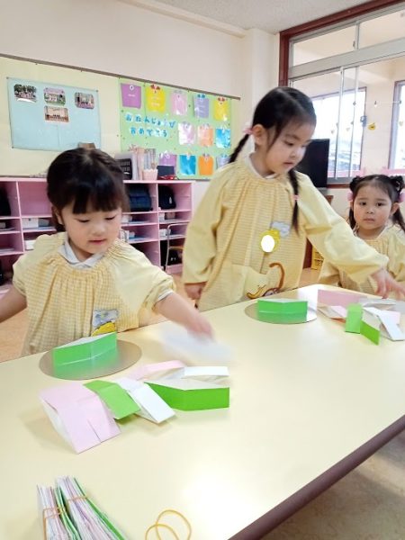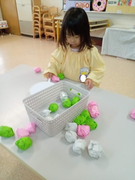 4年保育、年少・年中さんは、各クラスで「ひなまつり」にちなんだゲームを楽しみました。