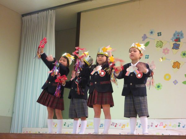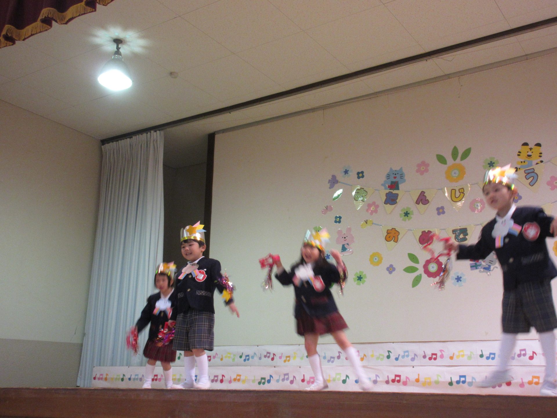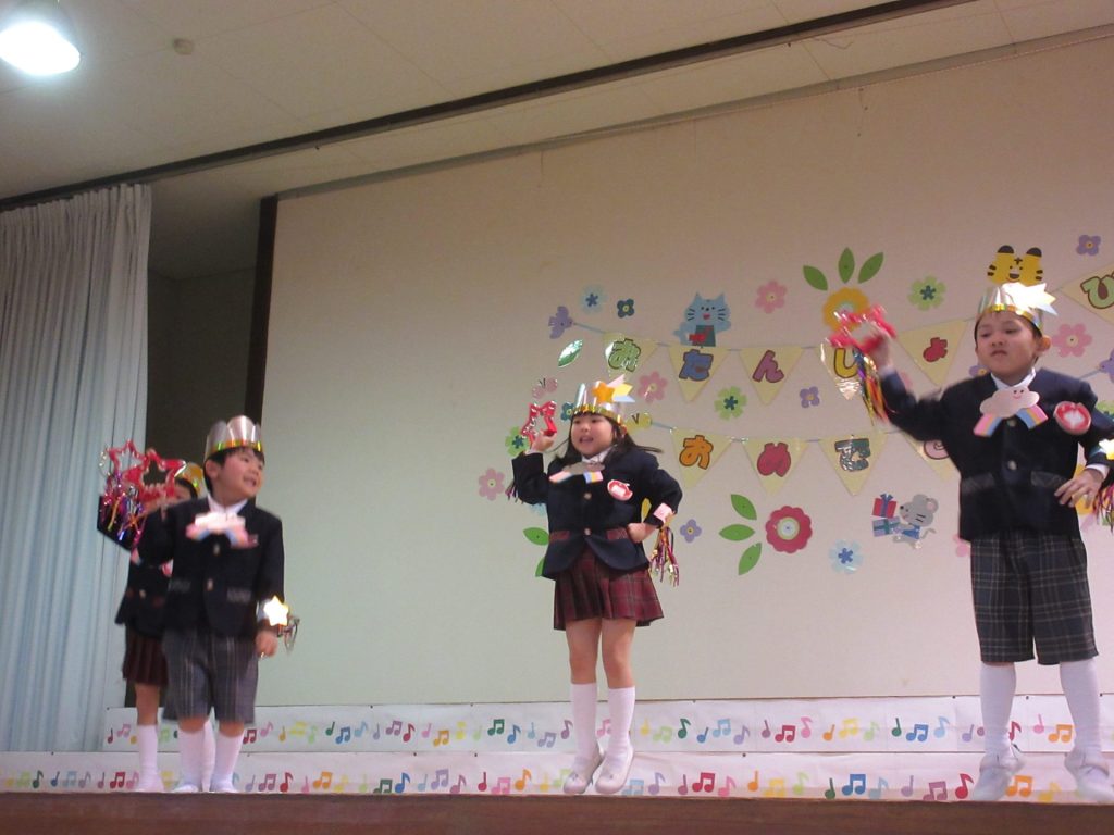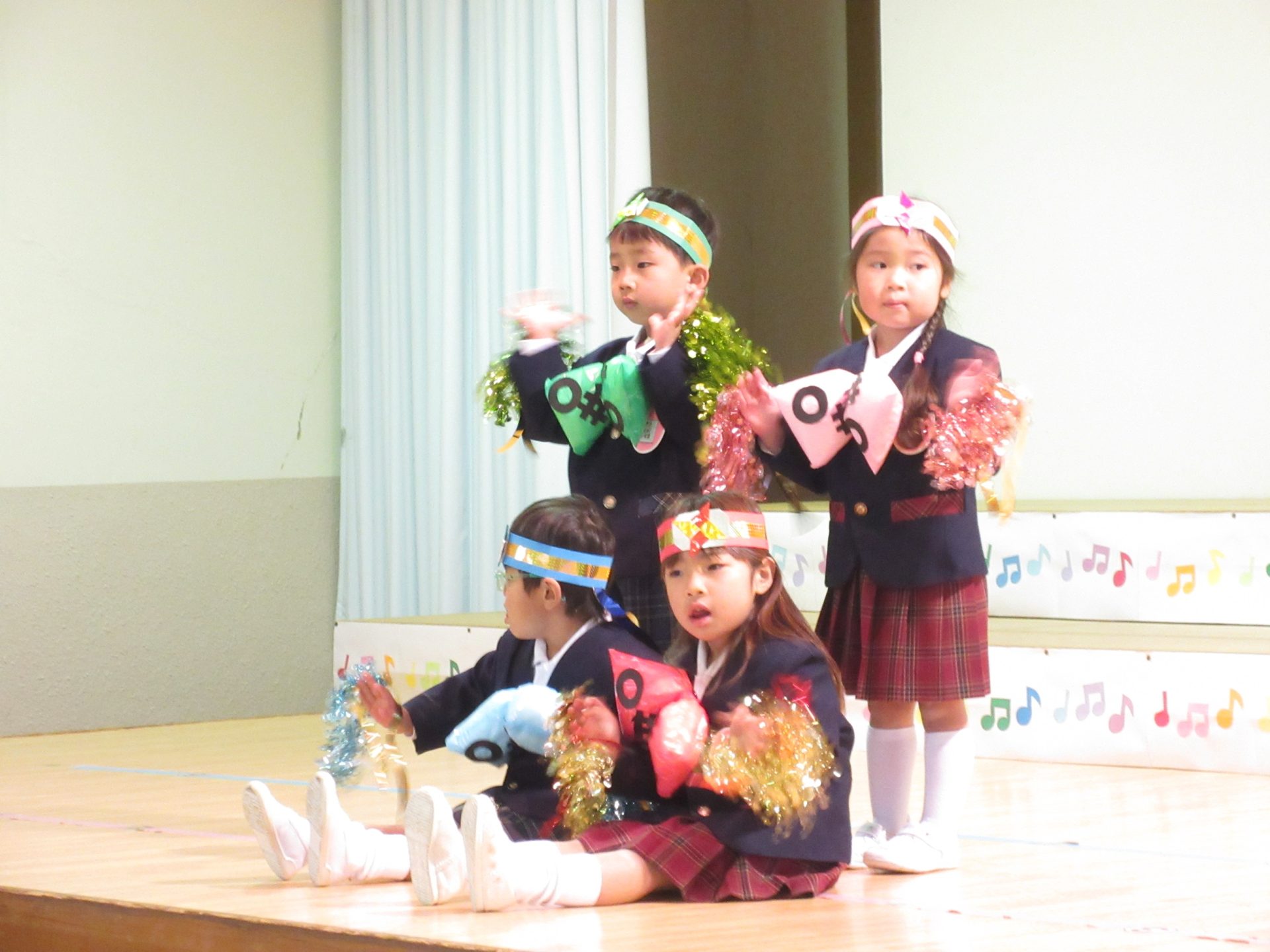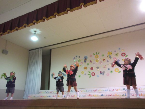 年少さんはお誕生児全員で、年中さんはクラスごとにお遊戯を発表しました。