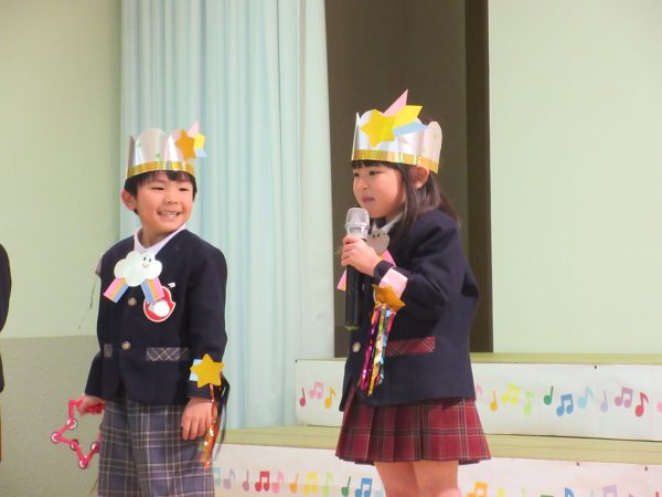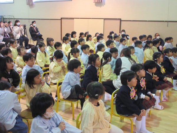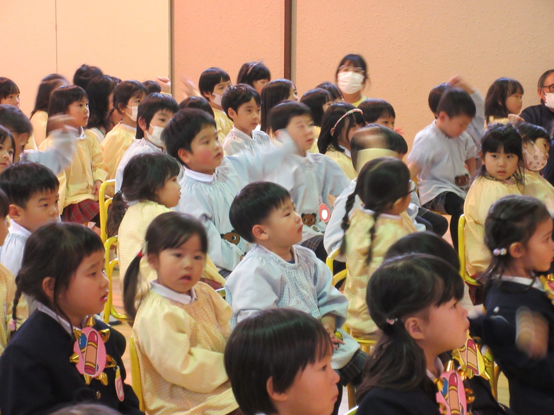 21日(金)、年少・年中の10月・11月・12月生まれの子どもたちのおたんじょう会が体育館で行われました。