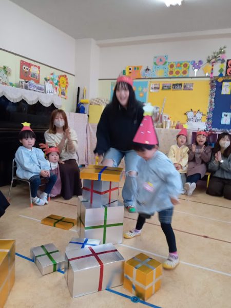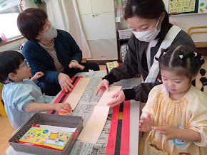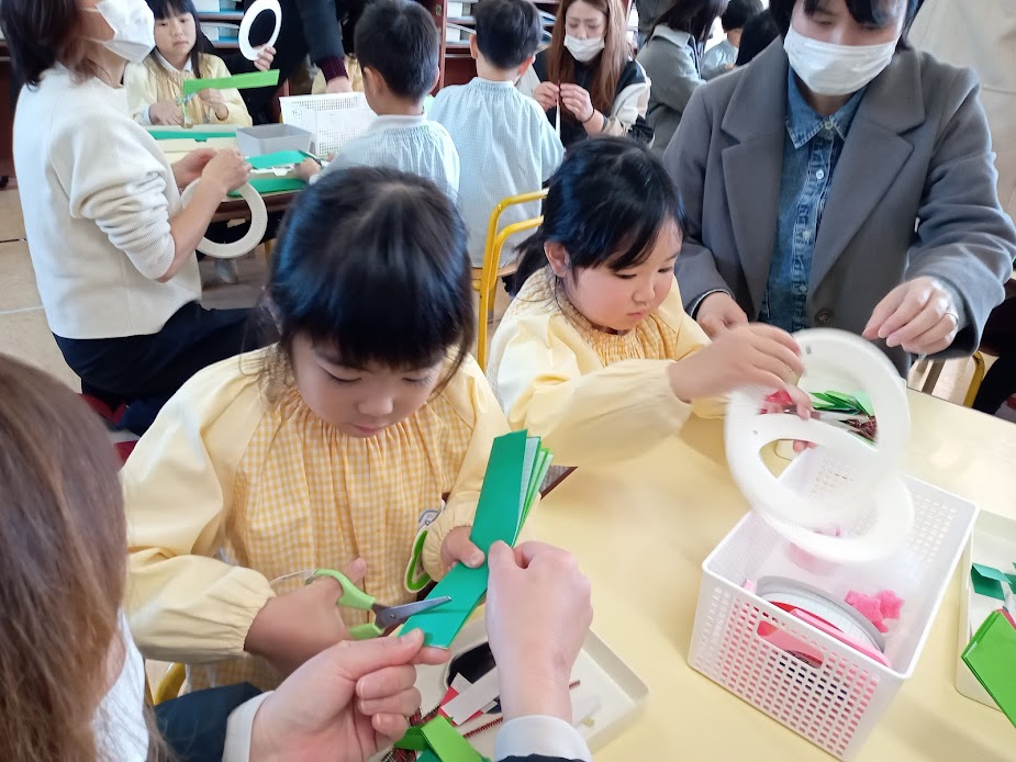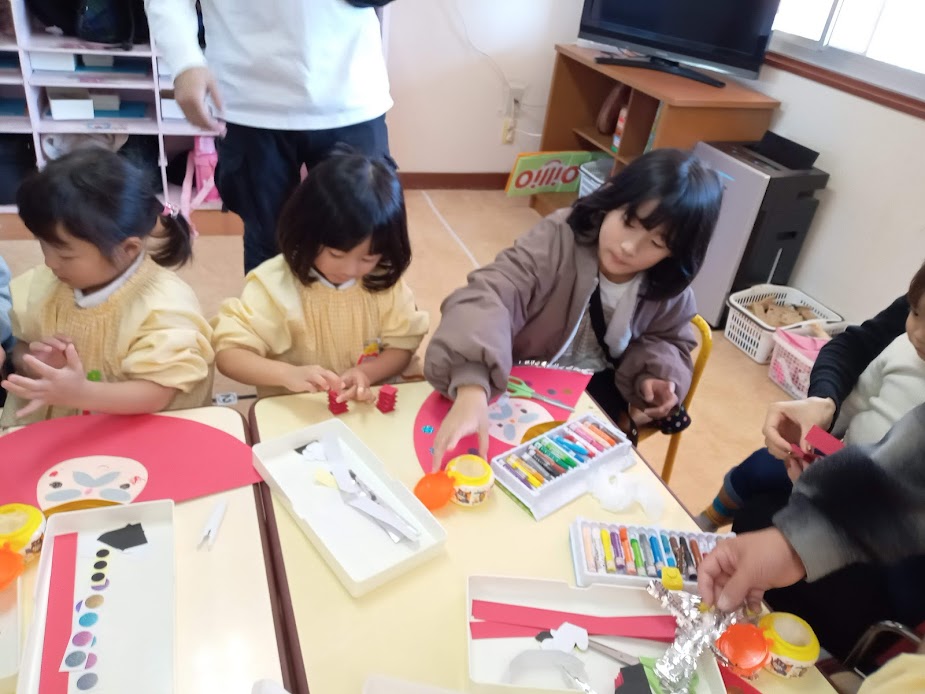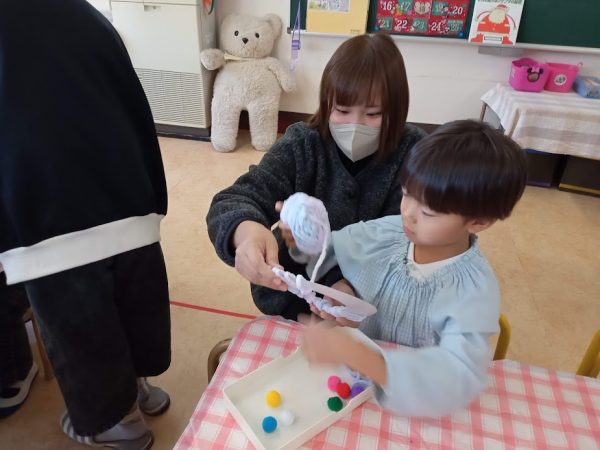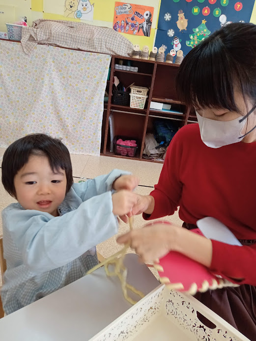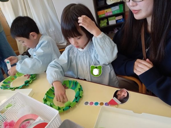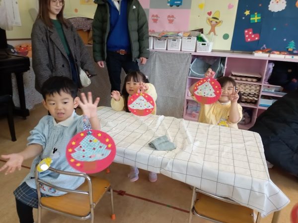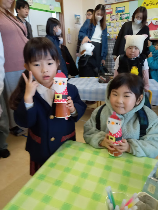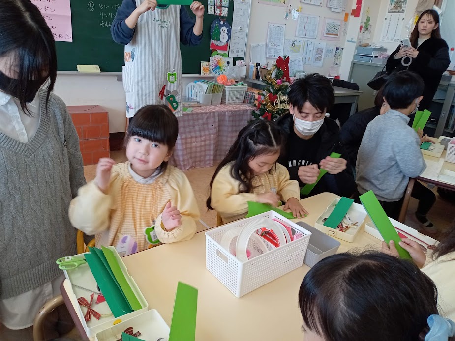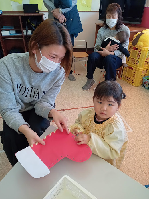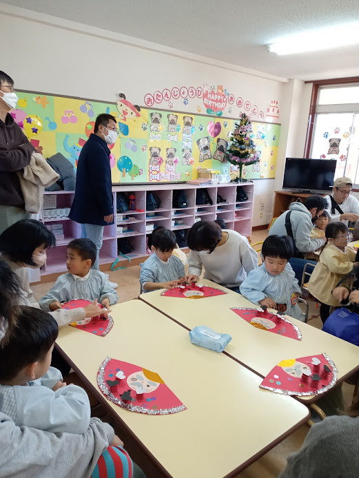 各お部屋では、クリスマスにちなんだ製作やゲームなどでお家の方々と楽しく活動している子どもたちの姿が見られました。