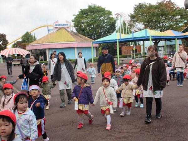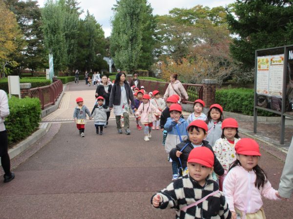 今日は、年少と満3歳児の子どもたちが出かけました。