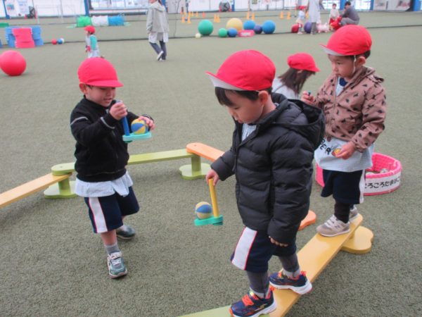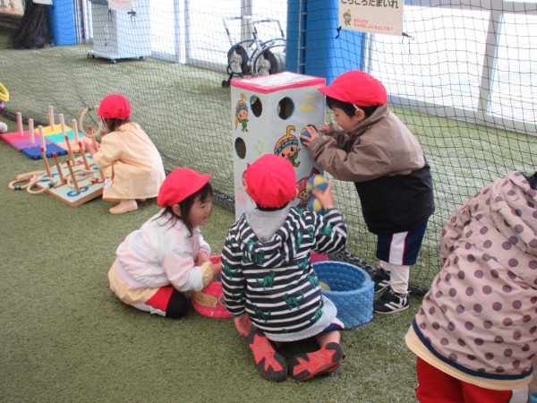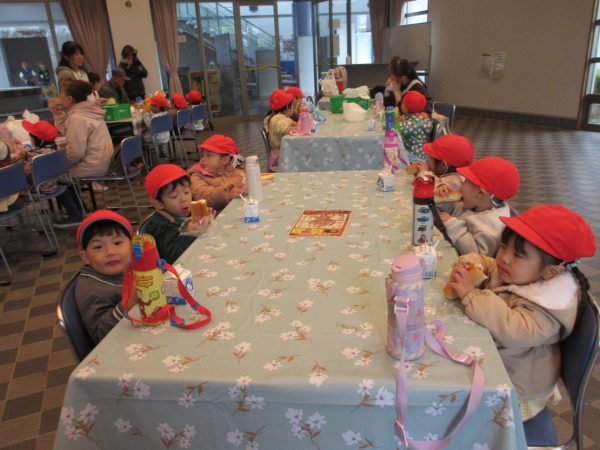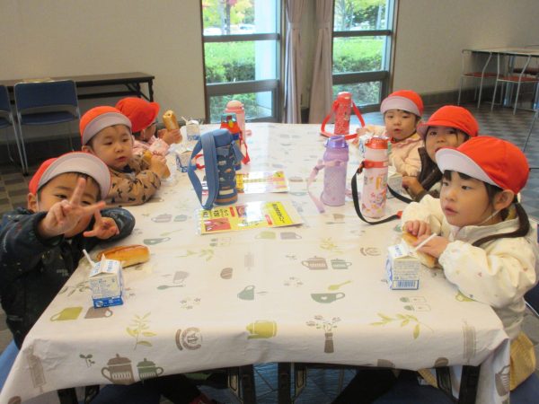 その後、屋内あそび場で遊び、お昼を食べて園に戻りました。