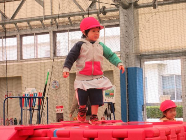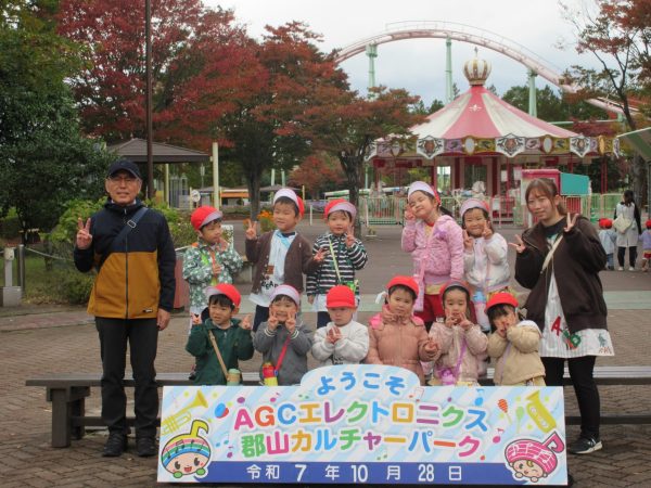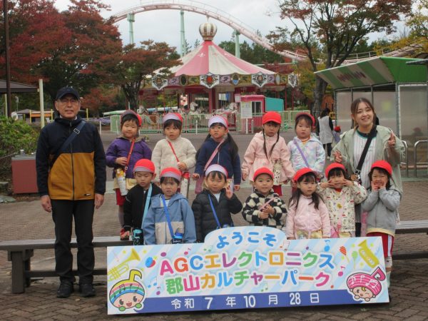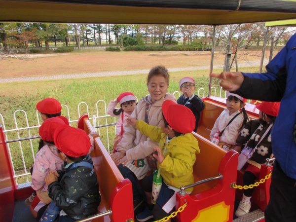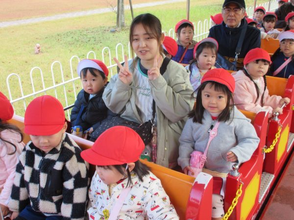 豆汽車に乗ったり屋内あそび場でたくさん遊んだりして、楽しい園外保育になりました。