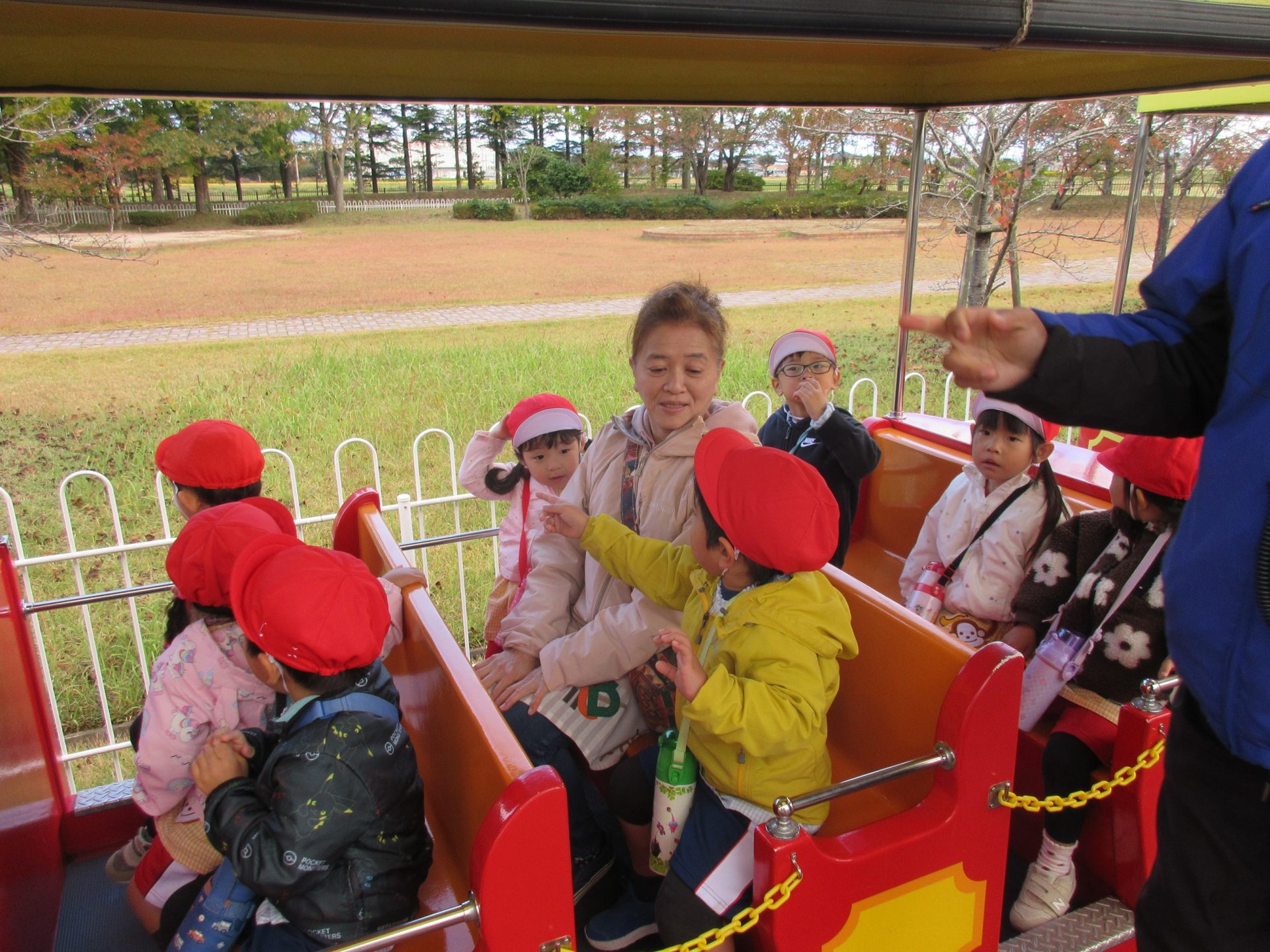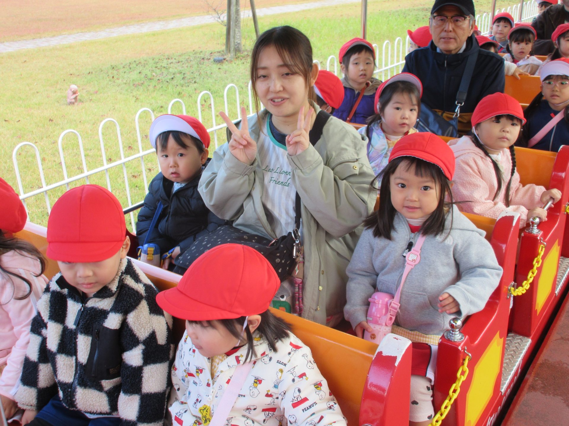 集合写真の後、豆汽車に乗って1周しました。