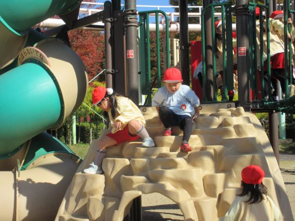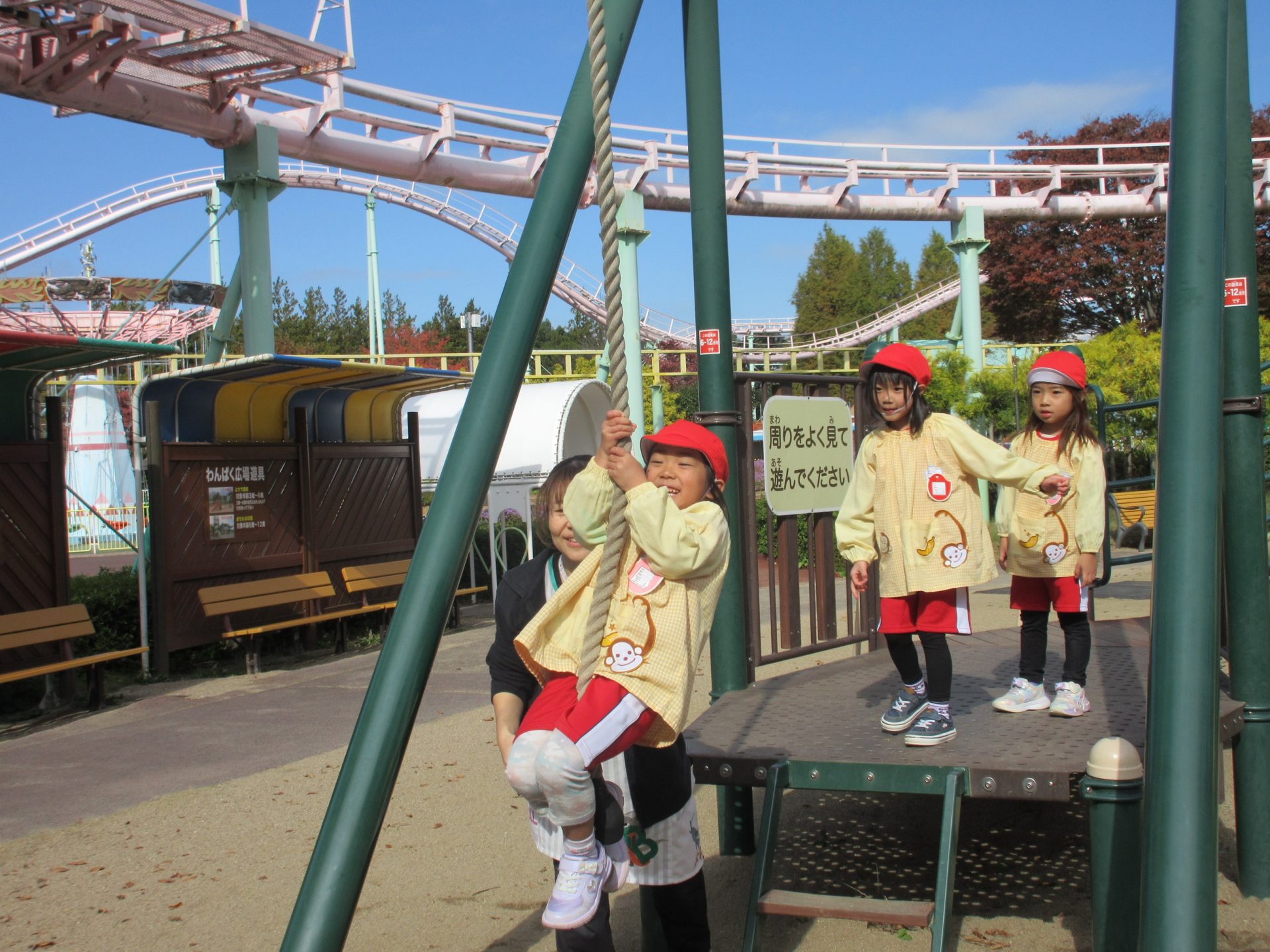 到着後、写真撮影を行い、わんぱく広場に移動していろいろな遊具で遊びました。