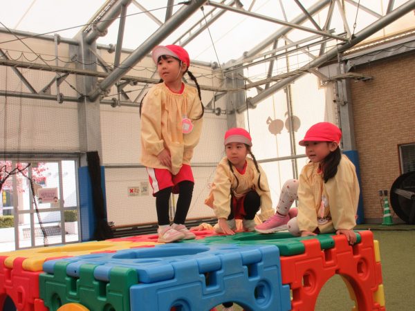 楽しく汽車に乗った後は、屋内あそび場に移動して、遊びました。