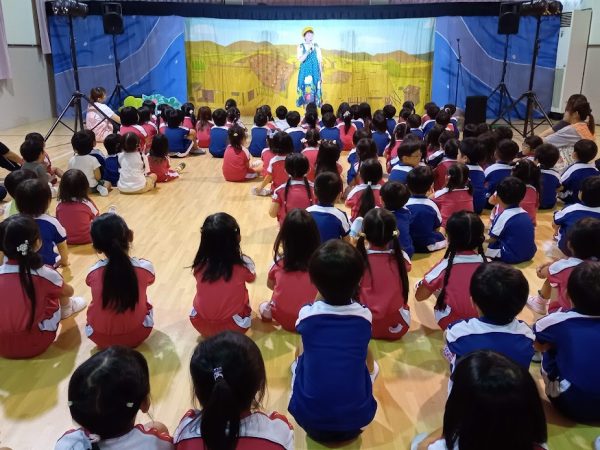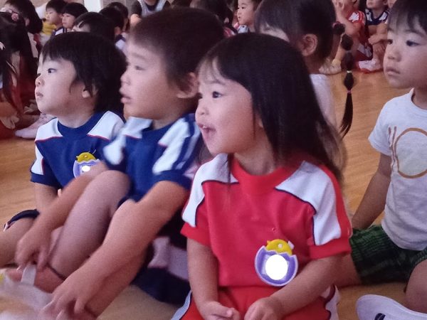 体育館に全園児が集まって鑑賞しました。