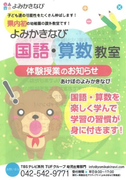 「あけぼのよみかきなび」体験授業参加者募集中!~保育参観日(12/6)に実施~